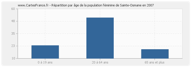 Répartition de la population féminine de Sainte-Osmane par âge en 2007 :