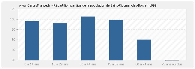 Répartition de la population de Saint-Rigomer-des-Bois par âge en 1999 :