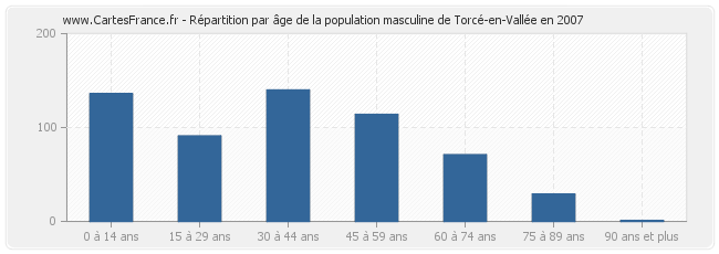 Répartition de la population masculine de Torcé-en-Vallée par âge en 2007 :