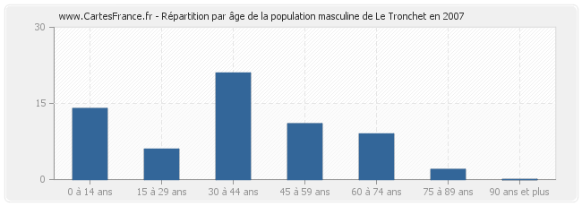 Répartition de la population masculine de Le Tronchet par âge en 2007 :