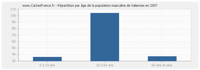 - Hommes de 20 à 64 ans habitant Valennes : 104