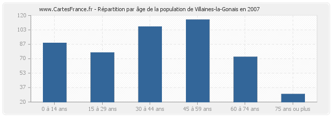 - Population de Villaines-la-Gonais de 45 à 59 ans : 115 habitants