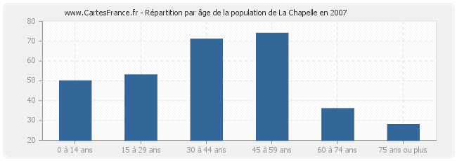 - Population de La Chapelle de 45 à 59 ans : 74 habitants