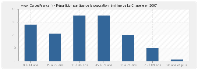 Répartition de la population féminine de La Chapelle par âge en 2007 :