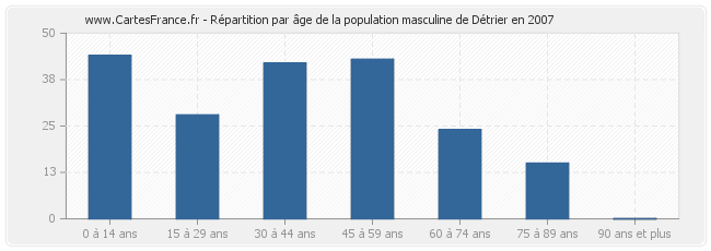 Répartition de la population masculine de Détrier par âge en 2007 :