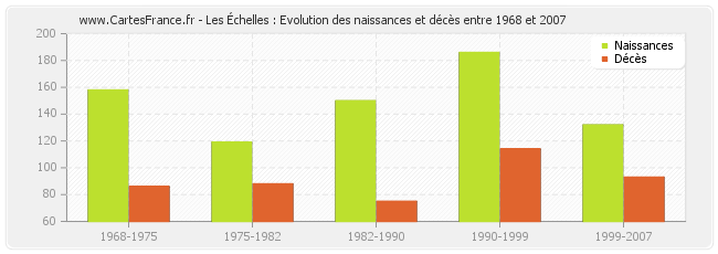 Les Échelles : évolution des naissances et décès de 1968 à 2007