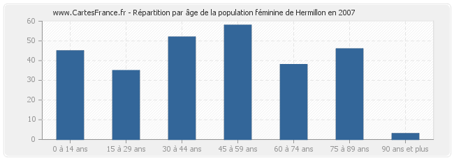 - Femmes de 45 à 59 ans habitant Hermillon : 58
