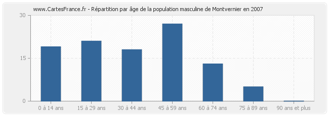 - Hommes de 45 à 59 ans habitant Montvernier : 27
