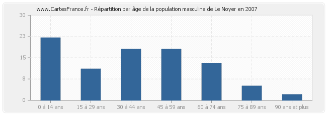 Répartition de la population masculine de Le Noyer par âge en 2007 :