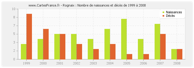- Rognaix en 2008 : 2 naissances et 2 décès