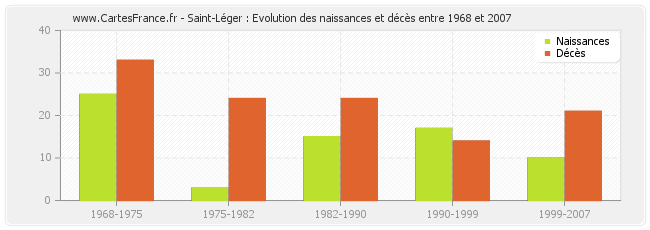 Saint-Léger : évolution des naissances et décès de 1968 à 2007