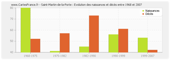 Saint-Martin-de-la-Porte : évolution des naissances et décès de 1968 à 2007