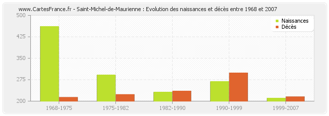 Saint-Michel-de-Maurienne : évolution des naissances et décès de 1968 à 2007
