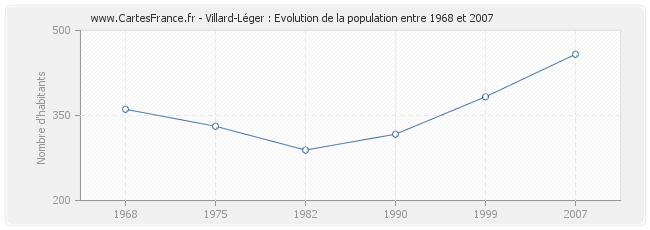 La population de Villard-Léger était de 458 habitants en 2007, 383 habitants en 1999, 317 habitants en 1990, 289 habitants en 1982, 331 habitants en 1975 et 361 habitants en 1968.