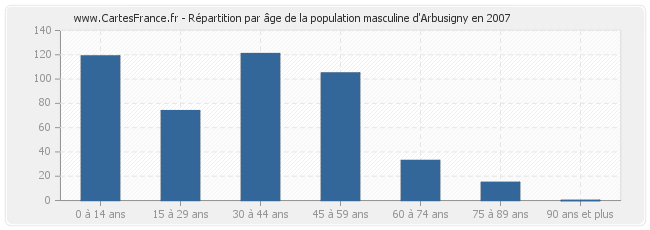 Répartition de la population masculine d'Arbusigny par âge en 2007 :