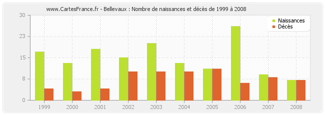 - Bellevaux en 2008 : 7 naissances et 7 décès