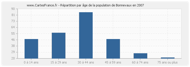 - Population de Bonnevaux de 30 à 44 ans : 85 habitants
