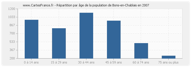 - Population de Bons-en-Chablais de 0 à 14 ans : 976 habitants