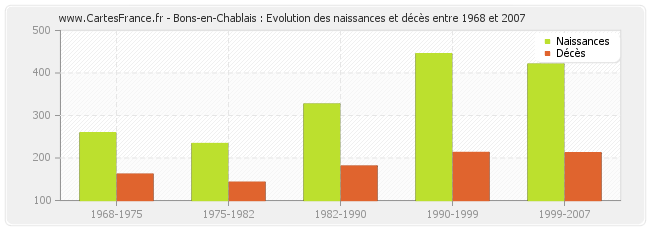 Bons-en-Chablais : évolution des naissances et décès de 1968 à 2007