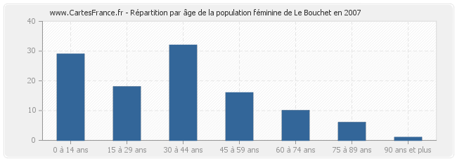 - Femmes de 30 à 44 ans habitant Le Bouchet : 32