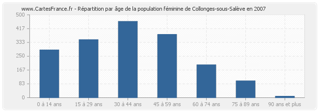Répartition de la population féminine de Collonges-sous-Salève par âge en 2007 :