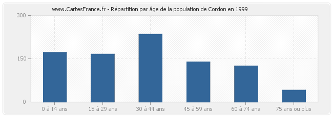 - Population de Cordon de 30 à 44 ans : 235 habitants