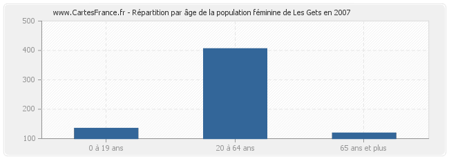 Répartition de la population féminine de Les Gets par âge en 2007 :