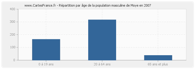 Répartition de la population masculine de Moye par âge en 2007 :