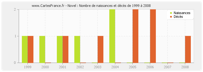 La population de Novel était de 51 habitants en 2007, 58 habitants en 1999, 63 habitants en 1990, 48 habitants en 1982, 46 habitants en 1975 et 80 habitants en 1968.