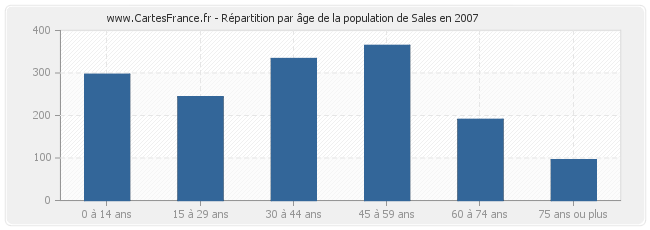 - Population de Sales de 45 à 59 ans : 298 habitants