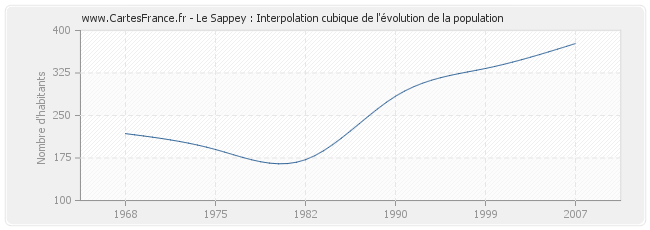 Cette courbe reprend l'historique de la population de Le Sappey de 1968 à 2007 en interpolation cubique. Ceci permet d'obtenir plus précisément la population de la commune de Le Sappey les années ou aucun recensement n'a été effectué.