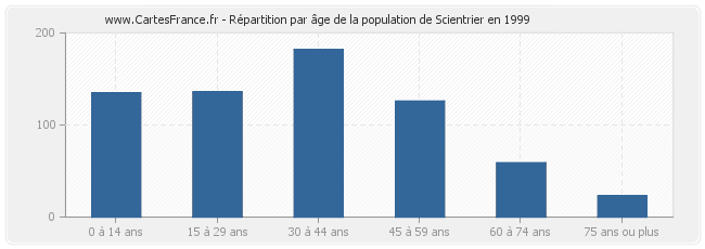 - Population de Scientrier de 15 à 29 ans : 136 habitants