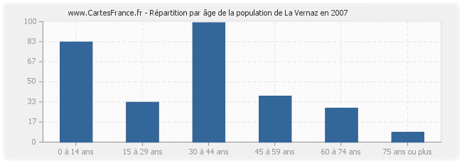 - Population de La Vernaz de 0 à 14 ans : 83 habitants