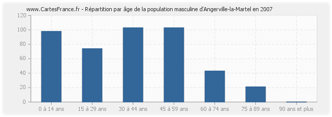 - Hommes de 45 à 59 ans habitant Angerville-la-Martel : 103