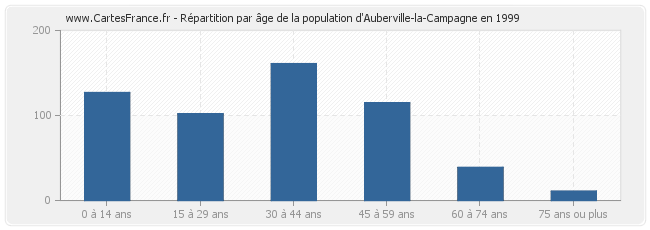 Répartition de la population d'Auberville-la-Campagne par âge en 1999 :