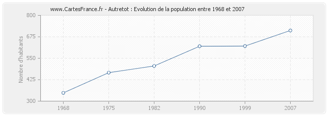 La population d'Autretot était de 712 habitants en 2007, 621 habitants en 1999, 620 habitants en 1990, 505 habitants en 1982, 466 habitants en 1975 et 348 habitants en 1968.