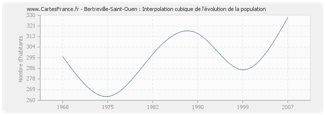 Cette courbe reprend l'historique de la population de Bertreville-Saint-Ouen de 1968 à 2007 en interpolation cubique. Ceci permet d'obtenir plus précisément la population de la commune de Bertreville-Saint-Ouen les années ou aucun recensement n'a été effectué.