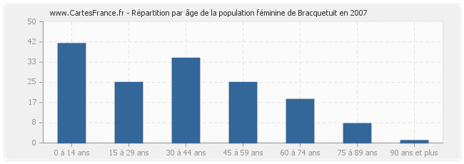 - Femmes de 0 à 14 ans habitant Bracquetuit : 41