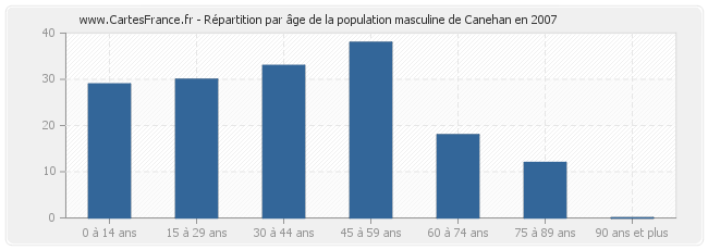 Répartition de la population masculine de Canehan par âge en 2007 :