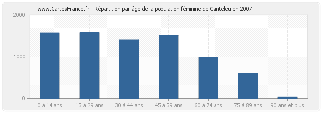 - Le nombre de femmes habitant Canteleu en 2007 était de 7 685