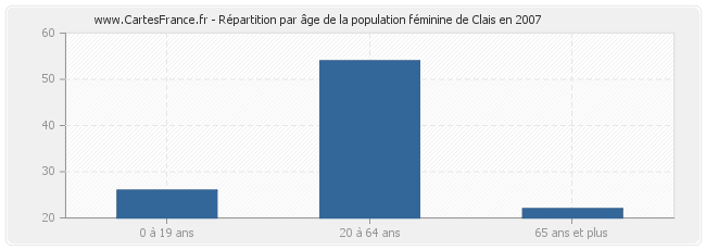 - Femmes de 20 à 64 ans habitant Clais : 54