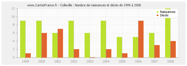 Colleville : évolution des naissances et décès de 1968 à 2007