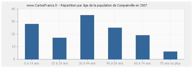 - Population de Compainville de 30 à 44 ans : 35 habitants