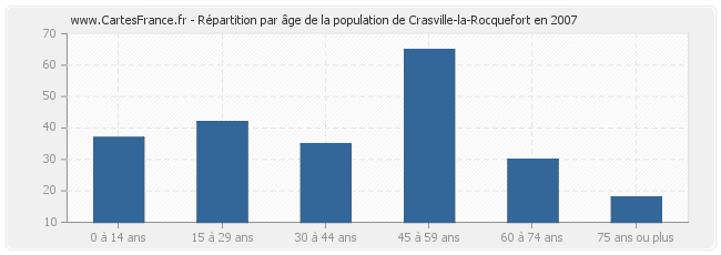- Population de Crasville-la-Rocquefort de 45 à 59 ans : 65 habitants