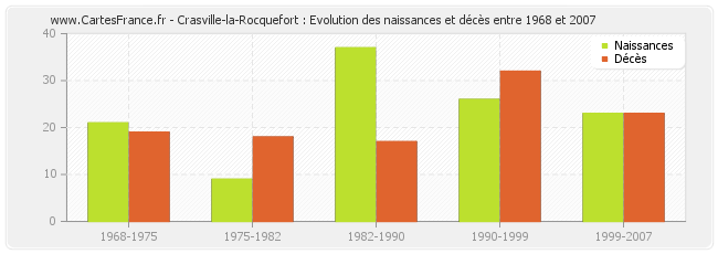 Crasville-la-Rocquefort : évolution des naissances et décès de 1968 à 2007
