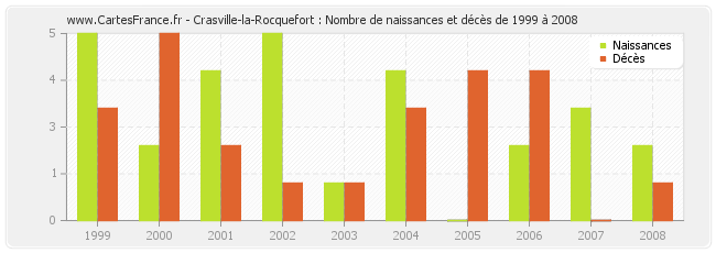 Crasville-la-Rocquefort : naissances et décès de 1999 à 2008