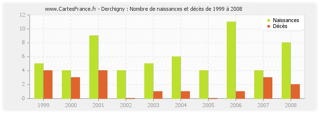 - Derchigny en 2008 : 8 naissances et 2 décès