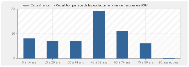 Répartition de la population féminine de Fesques par âge en 2007 :