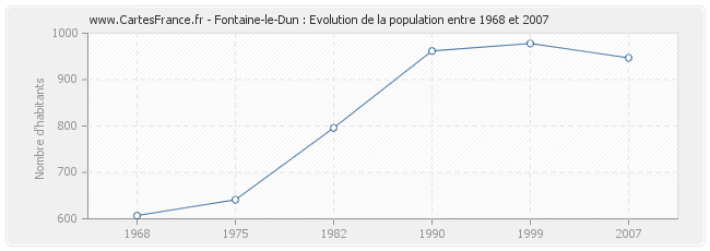 La population de Fontaine-le-Dun était de 947 habitants en 2007, 978 habitants en 1999, 962 habitants en 1990, 796 habitants en 1982, 641 habitants en 1975 et 607 habitants en 1968.
