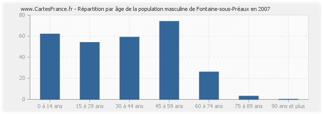 - Hommes de 45 à 59 ans habitant Fontaine-sous-Préaux : 74